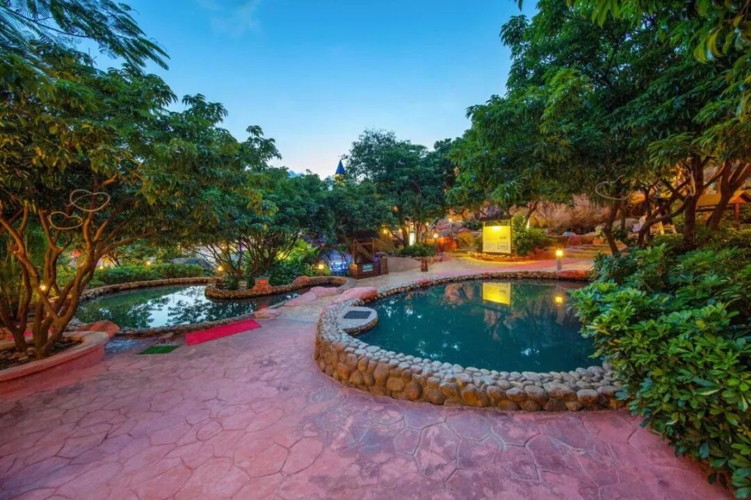 中秋將至,氣候逐漸轉涼,泡一池弱堿性溫泉水,含豐富的堿、鎂、鉀、偏硅酸等礦物質和微量元素,讓身體補一補,還有特色溶洞泡泉哦