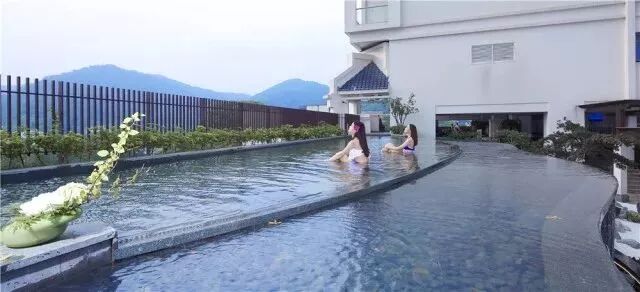 酒店的溫泉區(qū)設(shè)置在3、4、5樓,浸泡在溫泉里,眺望四周的青山綠水,確實(shí)有一種溫泉就在空中錯(cuò)覺(jué)!